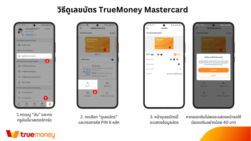 หมายเหตุ: บัตร TrueMoney Mastercard ใช้ยอดเงินจากบัญชีทรูมันนี่ของคุณลูกค้า